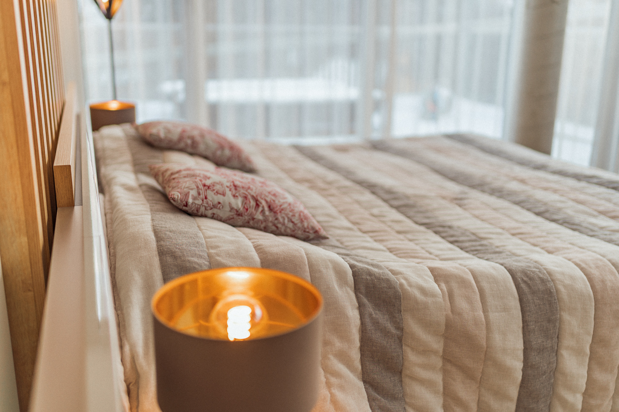 Рядко имаме възможност да се конкурираме с толкова богата палитра от дневна светлина, каквато ни предостави този имот. Поради отворената архитектура, сцените на осветеност и играта на светлосенки в мезонета по време на целия ден са буквално безкрайни. Наша цел беше да запазим и предоставим същото богатство от светлина и в тъмните часове на денонощието, когато клиентите ни се прибират от работа. Това е и една от причините да заложим на богат набор от димируеми токови кръгове за хола, както и на основно и декоративно димируемо осветление за баните.
